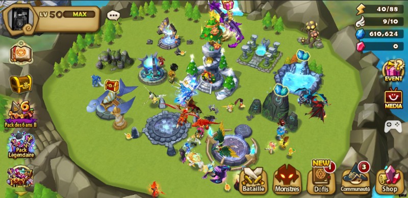 戦闘、モンスターもあります 、チャレンジ 、コミュニティ そして買い物 いくつかのオファーが表示されるタブ。