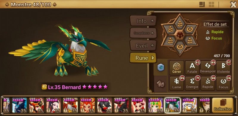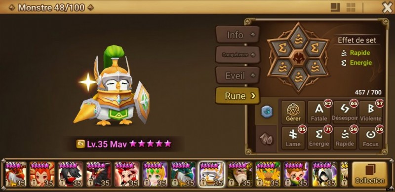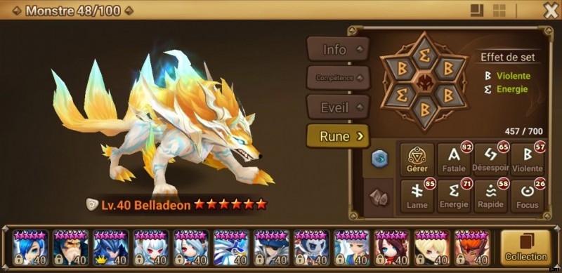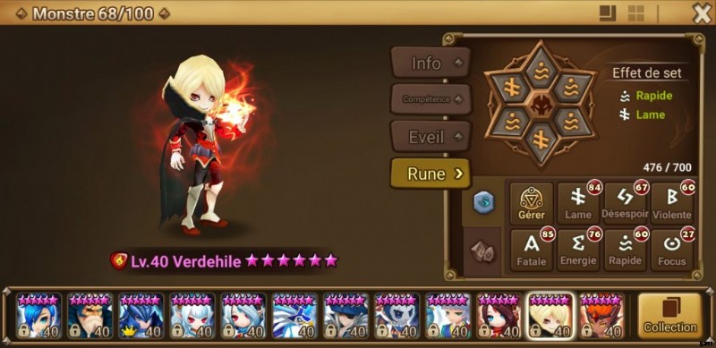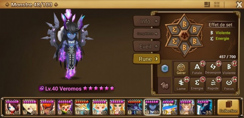 ヴェロモス :飼育可能 ゲーム開始からメインクエストまで .彼は気絶できます 敵とDoTを設定 . 暴力/エネルギーのルーン VIT/PV%/PV%で .彼のフュージョンが終わったら 、暴力を受け取ります 報酬として設定されたルーン。これは非常に 重要 です このルーン セットを彼に適用するには!