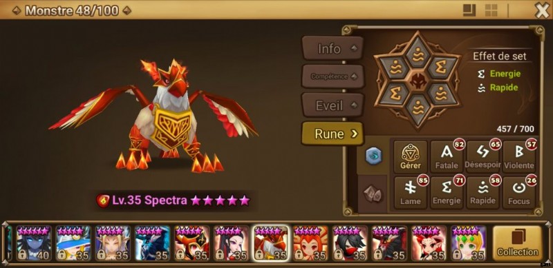 スペクトル :なくてはならないもう 1 つのモンスター あなたの成功に! 秘密で簡単に養殖できます ダンジョンに火をつける . 攻撃ゲージを減らします ヒットすることもできます ボス ハード スキル 2 のおかげで、ファスト/エナジー でルーンになることができます または暴力/集中 VIT/DCR/PV%で .