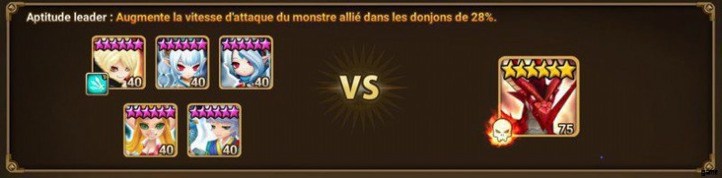これは火属性のボスなので、水のモンスターを優先する必要があります。 風のモンスターを避けてください。