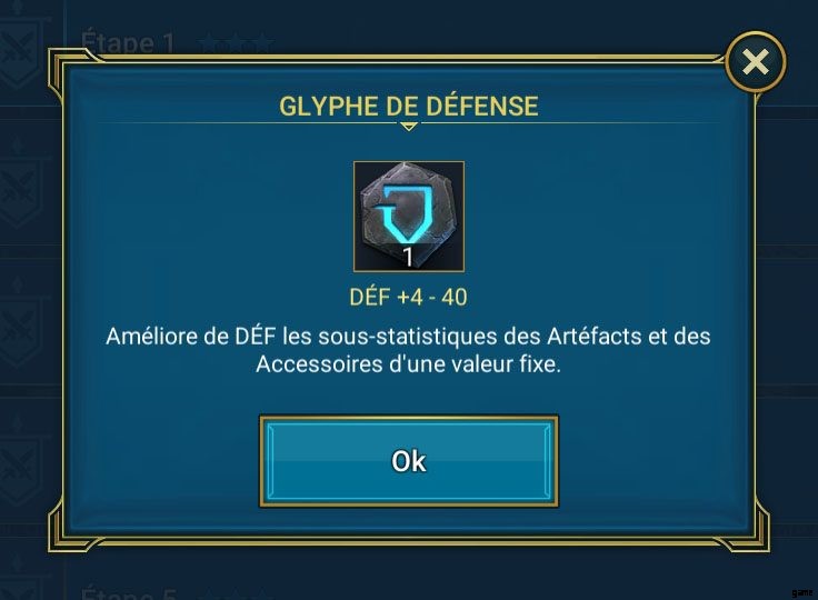 防御のグリフ 防御力を向上させます +4 から +40 までのアーティファクトのサブ統計。