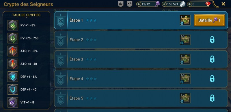 - サブ統計 :グリフは、次のサブ統計を改善します(PV、PV%、ATK、ATK%、DEF、DEF%、VIT、RÉS、PRÉ)。