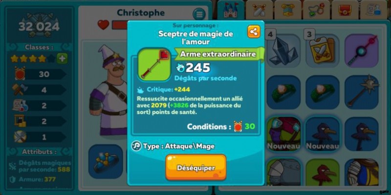 したがって、あなたが与えるダメージは、ほぼ独占的にメイジによって行われます。 . 蘇生力を備えた魔道士の 1 人を装備することを躊躇しないでください 必要に応じて、タンクまたはメイジの 1 つを生き返らせることができるようにするためです。