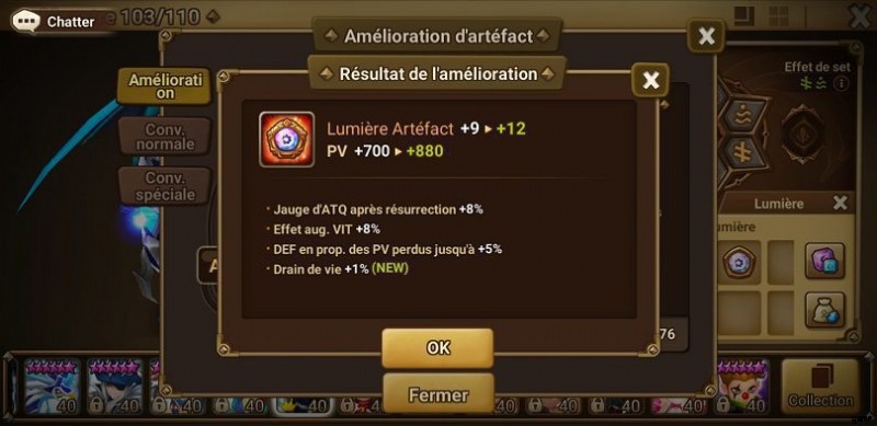 獲得したアーティファクトは、ルーンと同じタブに保存されます。それを改善するには、それほど複雑なことは何もありません。ルーンと同じように行うだけです!