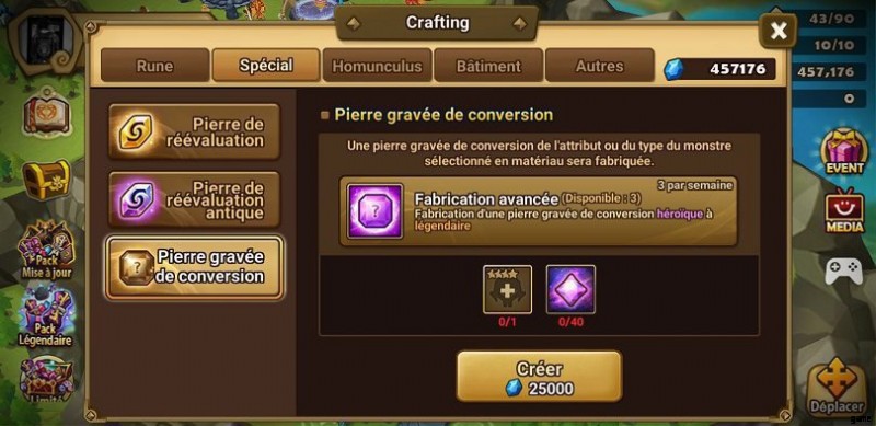 毎回コンバージョン ストーン 20 個が必要です このアクションが実行されます。これらの石は、上記の 2 つの新しいダンジョンで入手できます。