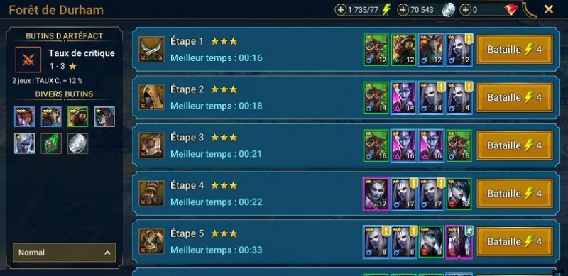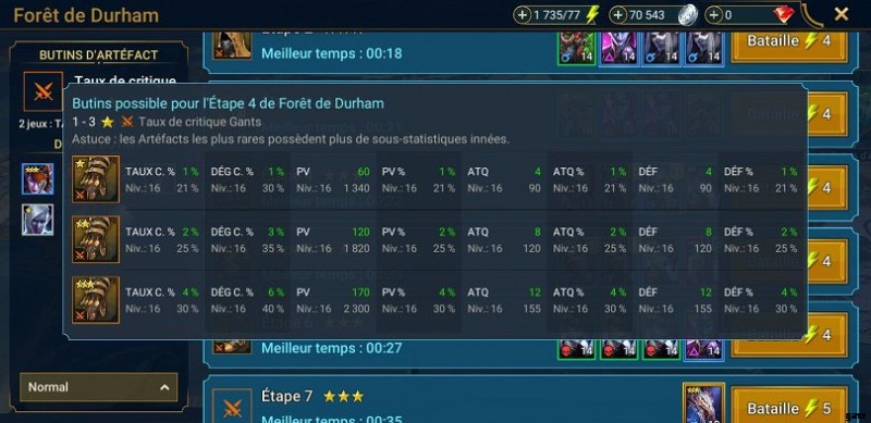 各シナリオは特定の種類の装備を提供します チャンピオンの進化に必要です。考えられる 12 のシナリオに加えて、各シナリオは 7 つのステージに分類されていることを知っておくことが重要です。 特定のステージの特定の装備を取得することができます。