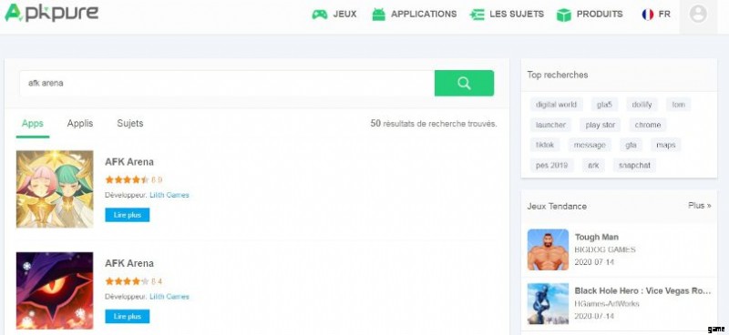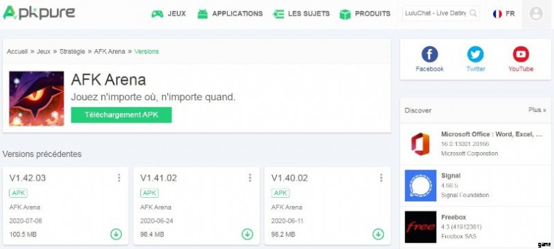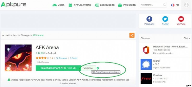 いくつかのサイトでダウンロードを勧められますが、APKPure にアクセスすることをお勧めします サイトはフランス語で、定期的に更新されているためです。