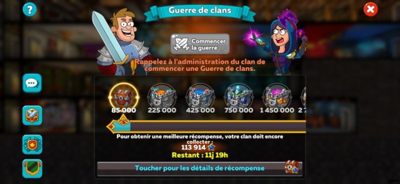 ハッスルキャッスルのクランウォーズ したがって、とても素敵な報酬を獲得するための特に効果的な方法です . アクティブな一族の一員であるとき 通常のクラン戦に参加できるようになります 、あなたの冒険はずっと速く進みます。