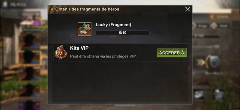 したがって、VIP アカウントを取得する可能性があります。 (5.49 ユーロ) VIP 特典を受け取るには: フラグメント ヒロインのリクルートに必要 ラッキー . "ラッキー (フラグメント) "、画像に示すように。