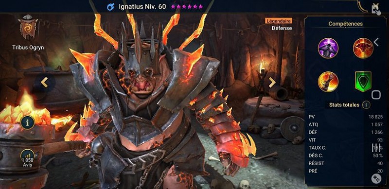 イグナチオ 伝説です 防御型 チャンピオン 、「オグリン族」に所属 "派閥。彼は印象的な体格と巨大な溶融鎧を身に着けているチャンピオンです。彼は魔法の親和性に属しています .