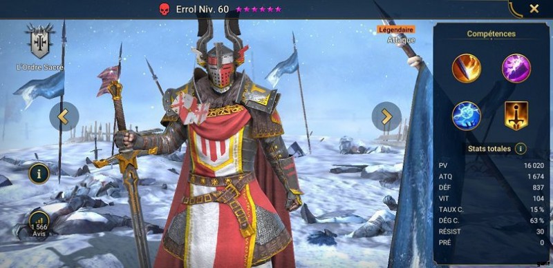 エロルは伝説の 攻撃 チャンピオン 「聖教団」に属している " ファクションです。彼はめったに入手できないチャンピオンであるため、非常に人気があります。 とてもパワフル .彼はまたとても役に立つ ゲームで。 エロール チャンピオンはストレングス アフィニティに属します .