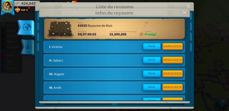 ☑️ ステップ 2:王国を選択 あなたが行きたいと思っていて、要件を満たしている場合は、サーバーを変更してください .