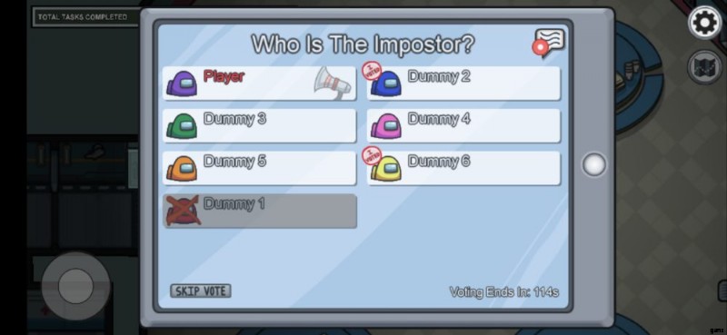 会議で 、ゲームの開始時と同様に、しない 活発すぎる .誰もあなたを非難しない場合は、他のメンバーに議論させてください.できるだけ介入しないようにしてください。投票にも同じことが言えます。あまり早く投票しないでください。 他のプレイヤーを待つのを躊躇しないでください ' 選択。このようにして、あなたは多数派に加わり、溶け込むことができます!