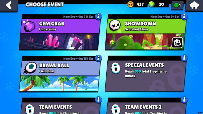 このようにして、お気に入りのブロウラーとイベントを決定し、後で戦略を立てることができます。