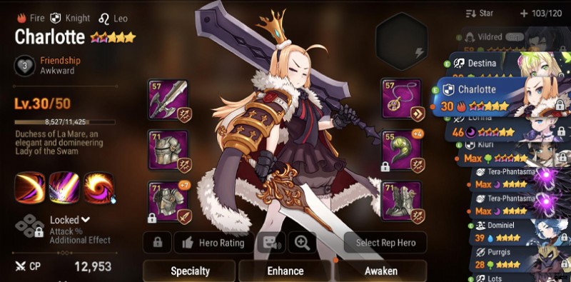 各ヒーローには クラス があります (アサシン、ウォリアー、ナイト、シューター、ソウルウィーバー、メイジ) 要素 (火、氷、土、影、光) と ランク (星の数)。この情報はゲーム内に直接表示され、簡単に収集できます。しかし、最も重要なことは彼の「役割」です "。特に、選択した装備によっては、同じヒーロー であるため、これを見つけるのは必ずしも簡単ではありません。 さまざまな役割を果たすことができます。