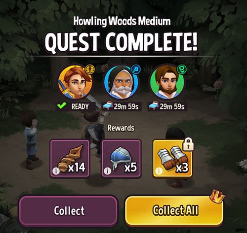 木製チェスト、冷凍チェスト、その他の タイタンの宝箱を買う クエストで入手。この Shop Titans ガイドで前述したように、クエストはヒーローによって完了されます。そのため、数人のヒーローを送り出し、著名人やエルフの森を集めることで、これらの報酬を無料で手に入れることができます。ただし、開くには胸の鍵が必要です .ゲームは、ゲームの開始時にメカニクスを開始するために 3 つ提供します。
