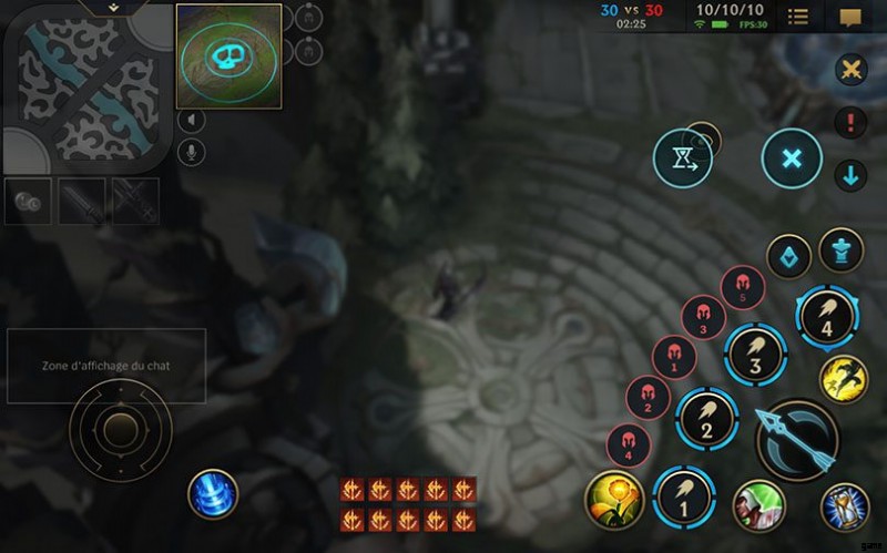 - サモナーの呪文 :ブレイズ、フラッシュジャンプ、ヒール...これらの呪文はすべて戦闘で大きなアドバンテージを与えます。しかし、回復時間も長いです。クールダウン時間は PC のものとはかなり異なりますので注意してください。たとえば、Flash の遅延は PC では 300 秒ですが、モバイルでは 150 秒です。したがって、理想は、敵が召喚呪文を持っていないときに戦うことです。彼の頭の中で数えなくて済む秘訣は、進行中のゲームの継続時間を示すゲームの内部時計を見て、既知の回復時間を追加することです.