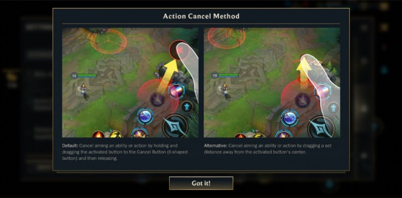 誤ってボタン (アルティメット スキルなど) をアクティブにすると、非常にイライラします。これは、特にタッチスクリーンとストレスで頻繁に発生します。したがって、貴重な回復時間を失わないように、アクションをキャンセルする必要があります。元に戻す領域は、効率を上げるためにカスタマイズ可能です。デフォルトのものはフェッチするのに特に時間がかかります.