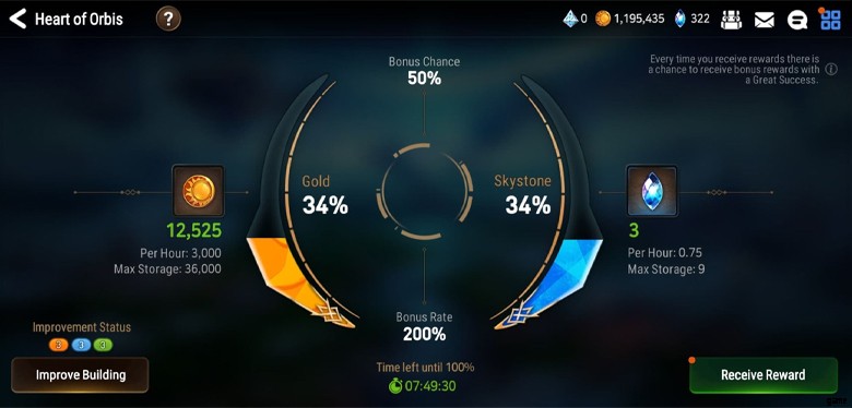 エピック セブンのサンクチュアリでは、ハート オブ オービスが最優先事項です .どのような状況でも、冒険をどれだけ進めても、すべてのアップグレードは役に立ちます。この機械は、金と石を連続的に製造しています。睡眠中、仕事中、スポーツ中に進歩するのに理想的です...恐れる必要はありません。有益な投資です . 👌
