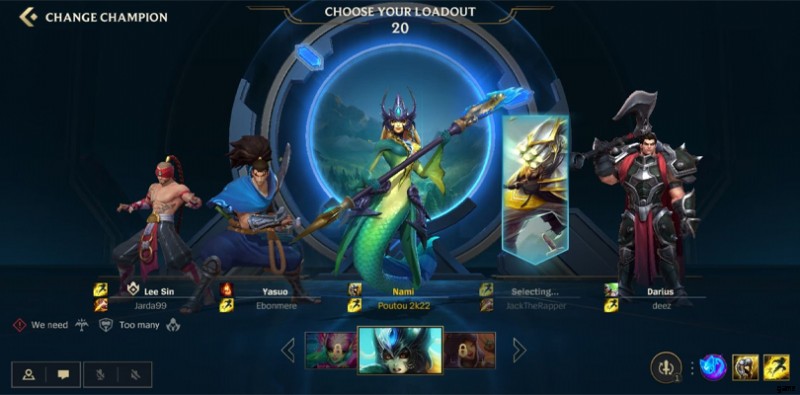 チーム内の他のプレイヤーとのコミュニケーションはあなた次第です チャットで 無秩序なラインナップを避けるために。最初の指標は、ゲームのヘルプ バブルです。下書き時の 良いアドバイス 左下隅に表示されます。彼らはあなたのフォーメーションの必要性や不均衡について知らせてくれます。それらは絶対的なものではありませんが、気が進まないチームメイトを屈服させるには十分です。ジャングルへのガイドを読んだ人は、ジャングラーのいないラインナップは生き地獄であることをすでに知っているはずです.