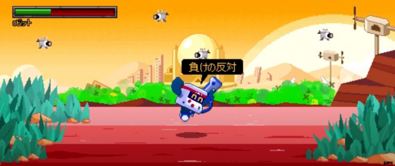 この時点で、8-BIT は緑色の毒ガスの前で勝利を祝っています。数回ガスを当てると、ブロスタ ミニゲームの 3 番目に移動します。 .