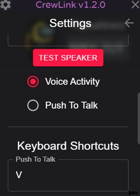 ゲームを開始する前に、いくつかの最後の小さな調整も役立ちます。それらはすべて、CrewLink インターフェースの左上にある小さな歯車をクリックして見つけることができます。