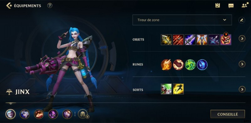 ジンクス 自動タレットにすぐに変身できる ADC です 、このインフラストラクチャの長所と短所を引き受けます。それは非常に大きなダメージを与えますが、可動性は限られています... したがって、ドラフト段階でそれを効果的に保護できるサポートと関連付けることをお勧めします。 ルル 、ジャンナ またはナミ これらのチャンピオンはジンクスの基本攻撃を強化できるため、より効果的です !