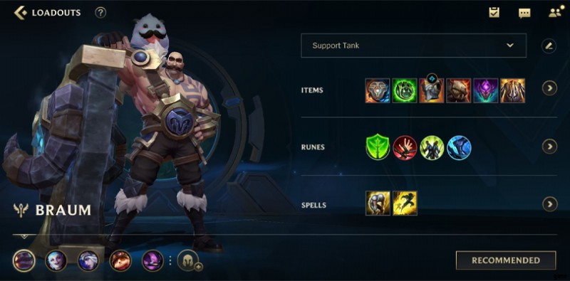 - 二次ルーン :弱点 もちろん、ブラウムチェックとの相乗効果も高い。その後、すべての選択肢は興味深いものですが、一般的には 忠誠心 を重視します チャンピオンは常に可能な限り味方に固執するためです。最後に、マキザール 優れたサポートがマップ上でより速く移動できるようにします。