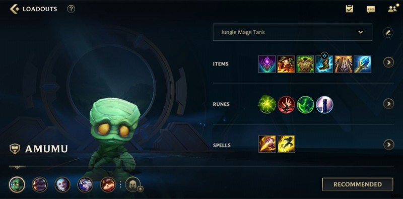 アムム ジャングルをマスターするために 、キャラクターのマナに注意を払う必要があります 、パスを管理します 強力なクラウド コントロール ローテーションを設定します .