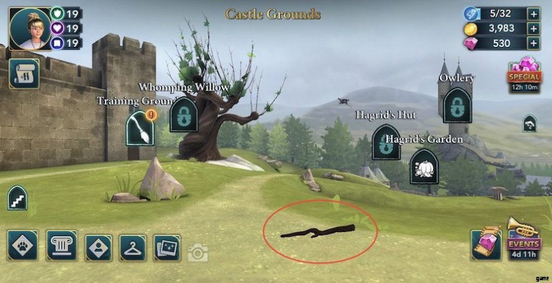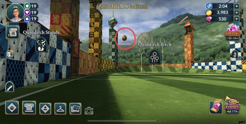 クィディッチ スタジアム :クィディッチ スタジアムに進むと、ゴールデン スニッチからエネルギー ポイントが回復します。