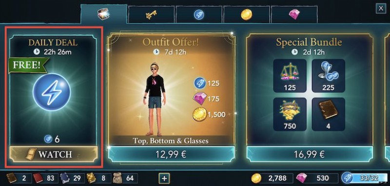 Watch ads in Harry Potter:Hogwarts Mystery