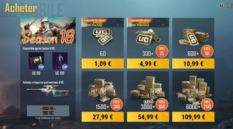 UC は文字通り Unknown Cash の略です . Tencent Games は、Call of Duty Mobile と CP、または Fortnite とその VBucks のようなゲームのイメージに通貨を統合することを計画していました。これにより、別の方法でショップのアイテムを収益化することができます .また、銀行口座を保護することもできます !もちろん、CPU はパブリッシャーが PUBG のような無料ゲームでお金を稼ぐ良い機会でもあります。