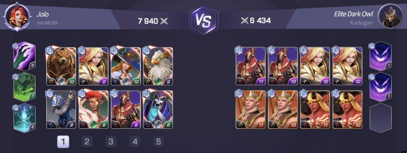 2階の場合は少し難しいです。まず、追加の呪文があるからです。その後、相手のジャンヌとクムンがチーム全体に回復をもたらします。ここで最大の危険は HP が 1 まで低下し、テサリオンまたはガニメデに襲われることです。
