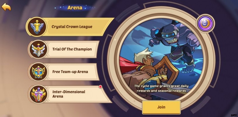 - デイリー アイドル ヒーロー アリーナの報酬 (Crystal Crown League):ログインするだけで、栄光のコイン、魔法の粉、宝石を受け取ることができます。リソースは、毎日午後 9 時にメールボックスに配信されます。したがって、アプリケーションを毎日開くことを忘れないでください。