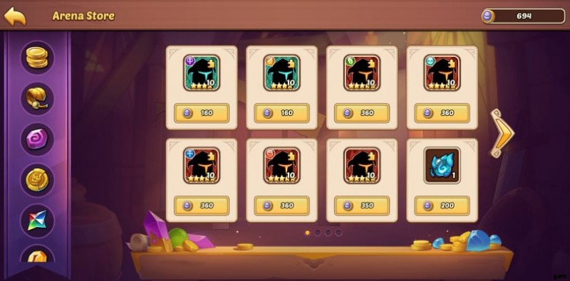 アイドル ヒーローズ アリーナ 独自の ショップ を持っています 栄光のコインを使用できる場所。そこには、たくさんの特別なアバターがあります。これらは CV では良さそうに見えますが、あまり効果がなく、多額の費用 (1,000 グローリー コイン) がかかります。ヒーローのフラグメントもあまり価値がありません (10 個のフラグメントで 350 コイン)。