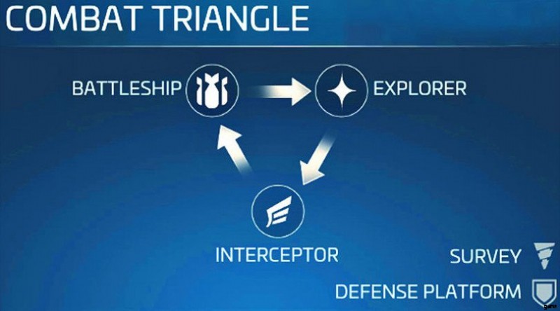 船の良し悪しに関係なく、船をうまく使用するには、三角形の三角関係を使用すると有利になることがよくあります。 .三角形は、ドレッドノートがエクスプローラーよりも強く、エクスプローラーがインターセプターよりも強く、ドレッドノートではインターセプターがより危険であることを示しています。調査/探査船は全体的に最も弱いです。