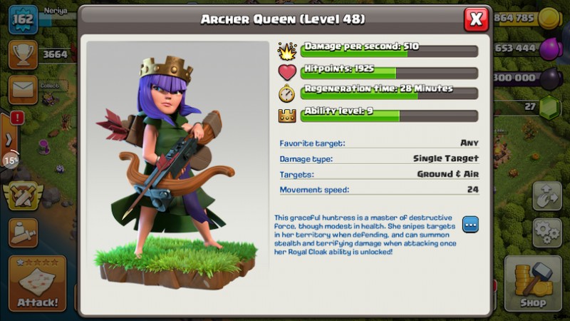 一方、射手の女王はロイヤル ベールを持っています DPS とヘルス ポイントを増加させるだけでなく、対戦相手の防御から見えなくなることができる能力 そして援軍として射手を召喚する。ゲーム内で女王をアップグレードできる最大レベルは、彼女の特別な能力のために 80 と 16 に設定されています。