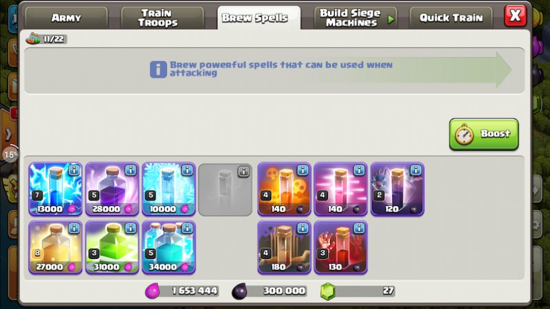 クラッシュ・オブ・クランには 2 種類の呪文があります:ピンクの呪文 - ピンクのエリクサーと呪文工場から作成 - そして 黒の呪文 - 黒いエリクサーと黒い呪文工場から作られました。