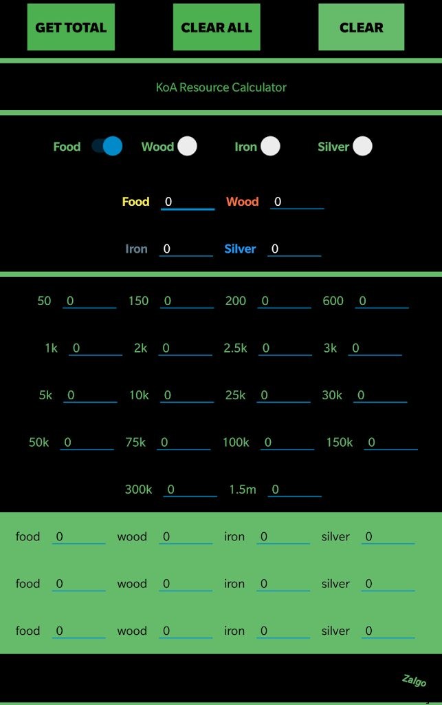 開発者とユーザーは私たちの生活を簡素化したいと考えています!これが、部隊編成だけが計算機ではない理由です!実際、King of Avalon にはリソース計算機能もあります。 だけでなく、部隊シミュレーター 、もう少し高度です。どちらのシミュレーターも King of Avalon APK で利用できます。リソースについては、KoAbots 計算機もお勧めします。これは非常に強力で、King of Avalon プレイヤーの PC に直接ダウンロードできます。