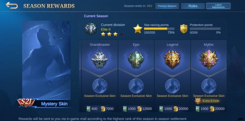 ランク モバイル レジェンド システムの報酬は何ですか?