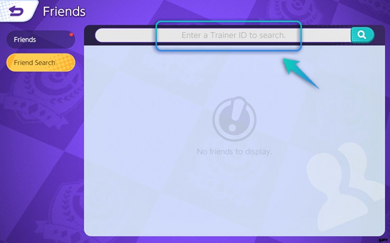 ここでは、フレンドリストと ポケモン の 2 つのタブから選択できます。 トレーナーコード/トレーナーIDによるフレンド検索をまとめます。友達検索を選択し、追加したい人のトレーナー コードを入力してください。