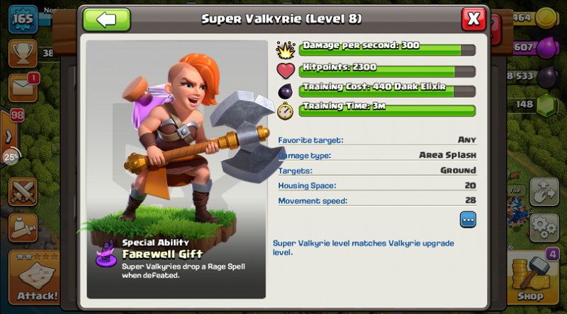 クラッシュ・オブ・クランにおけるスーパーバルキリーの特徴