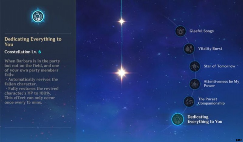 通常のウィッシュで呼び出しを行うことで、バーバラを取得することもできます またはイベント バナー .何度か召喚することで、星座を増やすことができます。