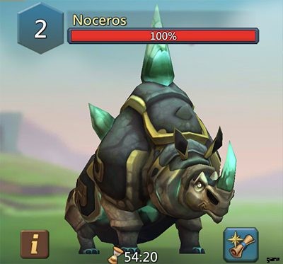 Against the Noceros, your heals will not save you. Its horn reduces the amount of assistance your healers can provide to the team, and its tough skin will drag out the fight if you don't try to deal maximum damage quickly. The same composition used against the Mega-Larva previously will have the desired effect of beating Noceros in Lords Mobile regardless of his level.