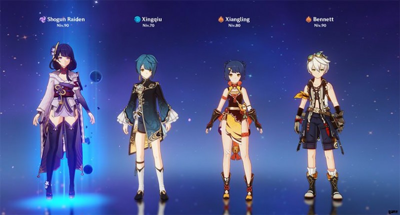 - Raiden / Xingqiu / Xiangling / Bennett:これは深淵で最も人気のあるチームです!それらを使用すると、エレメンタル リアクションが増加します。