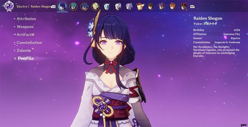 雷電将軍は6月26日生まれ 、ずっと前に...はい、彼女は500歳以上になるでしょう !身長は約1m68 .