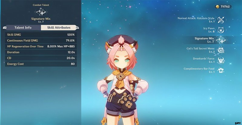 まだいくつかのHPを失いましたか?心配しないで、彼女のエレメンタルの大暴れで「スペシャル・キュヴェ "、ディオナはカクテルを発射します。これは、ゾーンダメージを与えることに加えて、アルコール蒸気を生成します。この効果は、対戦相手に継続的なダメージを与えます。また、エリア内のキャラクターの健康をディオナの健康レベルまで回復します。" ハッピードランク "タレント、アルコール蒸気フィールドに入る敵のATKが15秒間10%低下します。