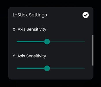 Mantis では、Flash Party のコントローラー設定をさらに深く掘り下げることもできます。 .これを行うには、D-Pad エレメントまたはスティックの近くにあるギア ホイールをクリックするだけです。そこから、感度を調整できます 後者の X 軸と Y 軸の感度による。
