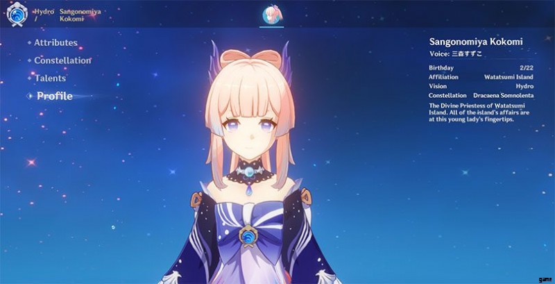 彼女は約17歳ですが、ココミはワタツミのほとんどの業務を優れたスキルで管理しています.それに加えて、彼女はワタツミ島の神官でもあります。ココミは2月22日生まれで、身長は約1.61mです。