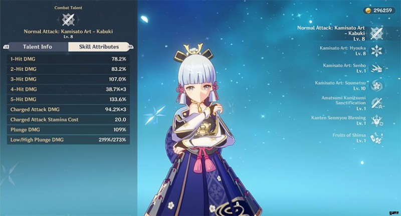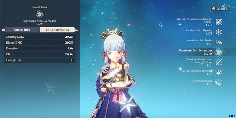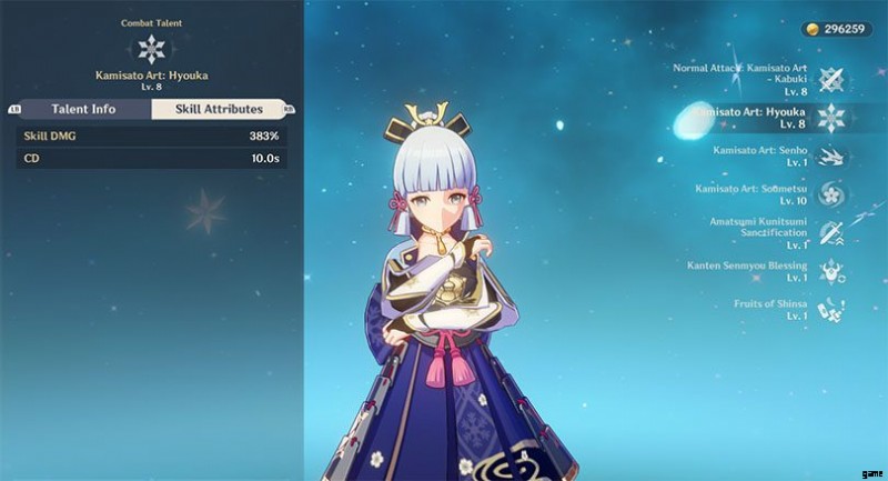 神里彩香は主にメインDPSとして使用されます :彼のスキルにより、彼は多くのダメージを与えることができます。 バースト DPS としても使用できます 、主に彼のエレメンタル スキルを使用します。
